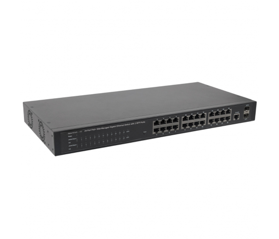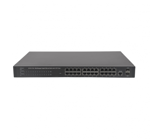 24-Port Gigabit Ethernet Web-Managed PoE+ Switch mit 2 SFP-Ports - 370W PoE, Rackmount