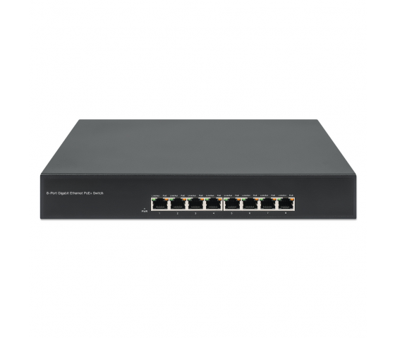 8-Port Gigabit Ethernet PoE+ Switch - 140W PoE, Rackmount