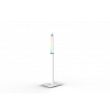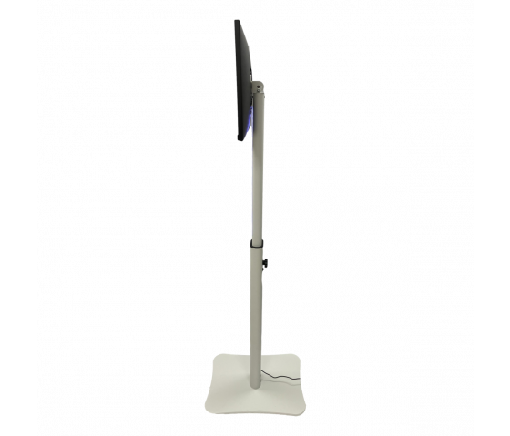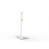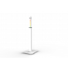Eines der praktischen Merkmale dieses Bodenständers ist die stufenlose Höhenverstellung, die zwischen 900 mm und 1400 mm variieren kann. Diese lässt sich mit einem Sterngriff auf der Rückseite leicht einstellen. Der Ständer besteht aus pulverbeschichtetem, weißem Metall, das eine langlebige und elegante Oberfläche bietet.