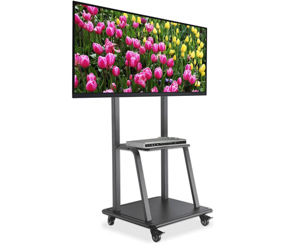 Dieser TV-Wagen ist äußerst robust und kann die größten Fernseher bis zu 100 Zoll und 150 kg tragen. Mit den zusätzlichen Fächern haben Sie genug Platz für alle Ihre Geräte, und die Räder machen es einfach, ihn überall hin zu rollen. Ideal für alle, die auf der Suche nach Flexibilität und Stabilität für ihren Großbildschirm sind.