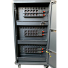 Inside the cabinet, 30 units are numbered and feature rubberized cable cutouts and slide-out drawers. The front has a secure door with metal hinges and at the back is a lockable compartment with power dividers. Ventilation guarantees optimal air circulation and and bumpers all around provide protection against damage. Power is ensured by 2 power cords and there is a surge protector and cutout for cables at the bottom.