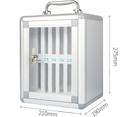 Esta caja de aluminio está especialmente diseñada para guardar hasta 12 celulares de forma ordenada y sin arañazos, gracias a los suaves bolsillos de espuma que protegen cada dispositivo individualmente. Con unas medidas de 21 x 19 x 27,5 cm, la funda de almacenamiento cabe fácilmente en cualquier aula o vestuario.