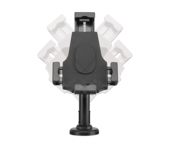 Este soporte ofrece una rotación completa de 360°, lo que permite utilizar la tableta tanto en modo horizontal como vertical. Los brazos ajustables pueden variar en altura de 196 mm a 270 mm y en anchura de 134 mm a 197 mm, por lo que es adecuado para tablets de distintos tamaños, de 7,9" a 10,5". Con una inclinación de +/-70° y un giro de 330°, puede establecer el ángulo de visión perfecto sea cual sea la situación.
