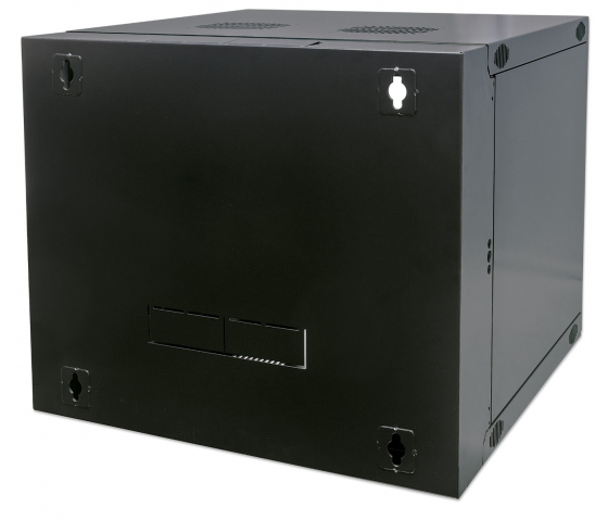 Coffret réseau mural 19 pouces MHT111 avec porte en verre - hauteur 9U - double section - profondeur 450 mm - flatpack - noir