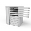 Les compartiments de l'armoire sont dotés d'un port de câble unique zioxi oneClick qui permet d'obtenir une courte longueur de câble dans chaque compartiment et de maintenir les casiers ordonnés.