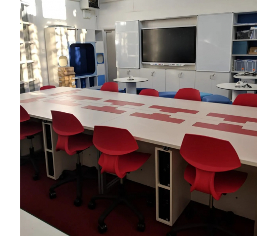 La technologie P1 powerUp intégrée permet, d'une simple pression sur un bouton, de sortir les moniteurs, les claviers et les souris du bureau. Cela permet de disposer d'un poste de travail informatique complet en cas de besoin, tandis que l'équipement peut être rangé facilement et discrètement lorsqu'il n'est pas utilisé. Cette fonctionnalité est idéale pour les espaces où différentes formes de travail sont combinées, comme les salles de classe, où les étudiants peuvent facilement passer de l'informatique individuelle au travail de groupe, ou les bureaux, où un aspect soigné et professionnel est souhaité.