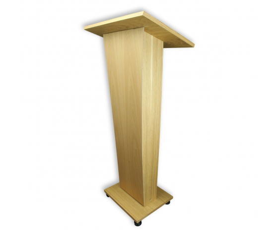 Les formes simples conduisent souvent à un grand Design. Pollux est un pupitre entièrement construit en bois. Les panneaux latéraux fuselés combinés avec les formes droites de la base et le dessus donnent au lutrin une touche spéciale.