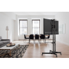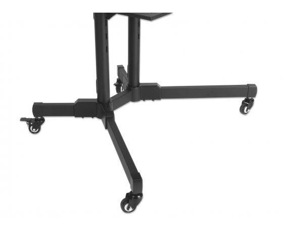 Dzięki wysuwanym słupkom paczka jest kompaktowa, co ułatwia dostawę. Umieszczenie płaskiego ekranu można regulować wzdłuż słupków, aby uzyskać idealną wysokość oglądania, a regulowana półka na komponenty zapewnia dodatkowe miejsce do przechowywania sprzętu AV. Wózek TV posiada również wyjmowaną półkę na kamerę, co czyni go doskonałym wyborem do wideokonferencji lub jako część rozwiązania Digital Signage.