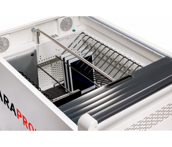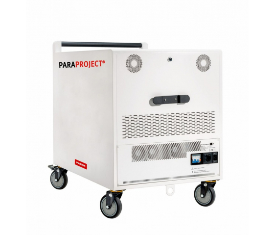 PARAPROJECT® Trolley U40/U20 WOL na nowo definiuje wielozadaniowość i jest uniwersalnym rozwiązaniem wśród rozwiązań do przechowywania sprzętu IT. Produkt zapewnia miejsce dla nawet 40 tabletów lub laptopów wraz z ich przewodami zasilającymi, a jednocześnie zapewnia energię dzięki inteligentnemu zarządzaniu ładowaniem. Ponadto, zintegrowany wyłącznik czasowy zapewnia optymalne planowanie i wydajność, umożliwiając czasowe, dzienne i tygodniowe plany szuflad. PARAPROJECT® Trolley U40/U20 WOL przekonuje nie tylko jako stacja ładowania, ale także jako inteligentny asystent IT dzięki integrowalnemu 20-portowemu switchowi, który umożliwia jednoczesne sterowanie do 20 urządzeń i dostarczanie nowego oprogramowania. Produkt posiada solidną i trwałą stalową ramę oraz posiada zamykaną jalousie dla zwiększenia bezpieczeństwa. Jest też aktywny system wentylacji, który zapobiega przegrzewaniu się urządzeń. Ponadto produkt posiada boczne gniazdo Schuko na dodatkowy sprzęt, złącze sieciowe i wyłącznik główny, a całość dopełniają cztery gładkie kółka i uchwyt Softtouch do wygodnego transportu.