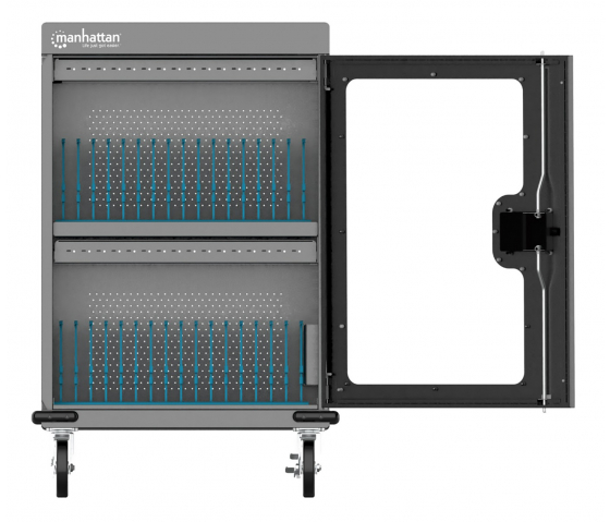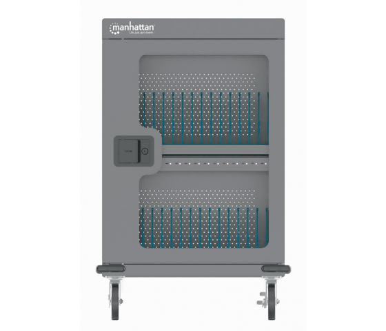 Manhattan 32-Port USB-C Charging Cart är en mobil laddningslösning för platser som restauranger, skolor och hotell, som ger snabb laddning för upp till 32 Chromebooks, smartphones eller surfplattor via USB-C Power Delivery 3.0-portarna. Den robusta, hållbara stålkroppen och låsen hjälper till att säkra enheter under laddning.